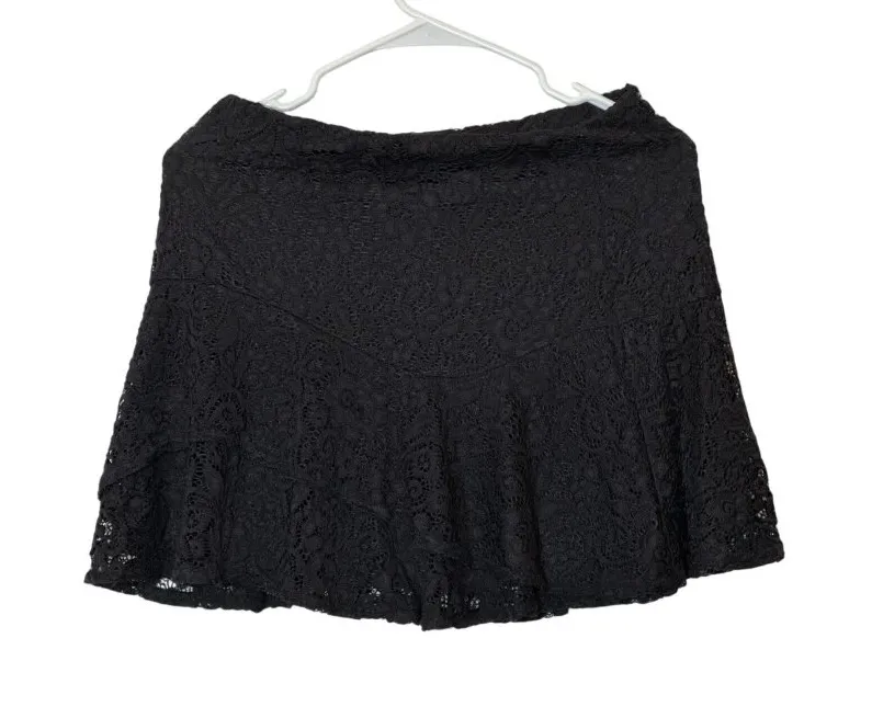 A trendy Aqua Black Lace Mini Skirt with a Y2K A-Line design. Perfect for a preppy, indie, or whimsi... Show more