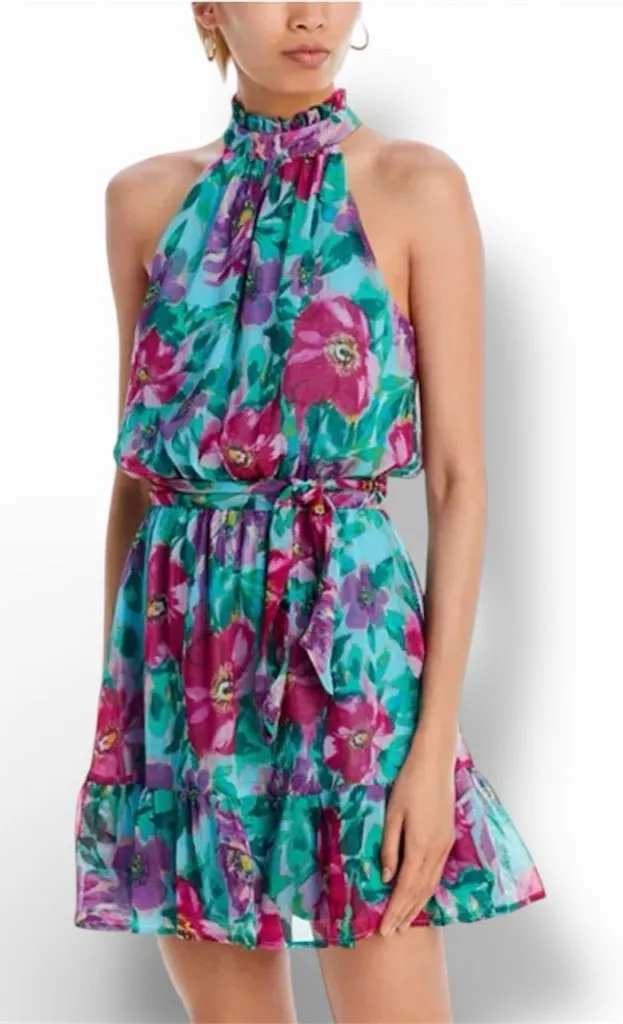 AQUA Bloomingdale’s Poppy Floral Halter Mini Dress Cottage Core Fairy Romantic XXL New without tags.... Show more