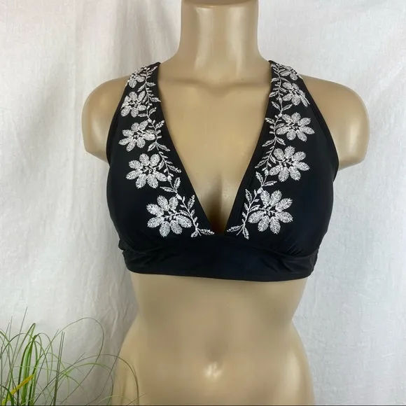 Aqua Couture Black & White Embroidered Floral Halter Bikini Swim Top L Size L - $28 - From Designer