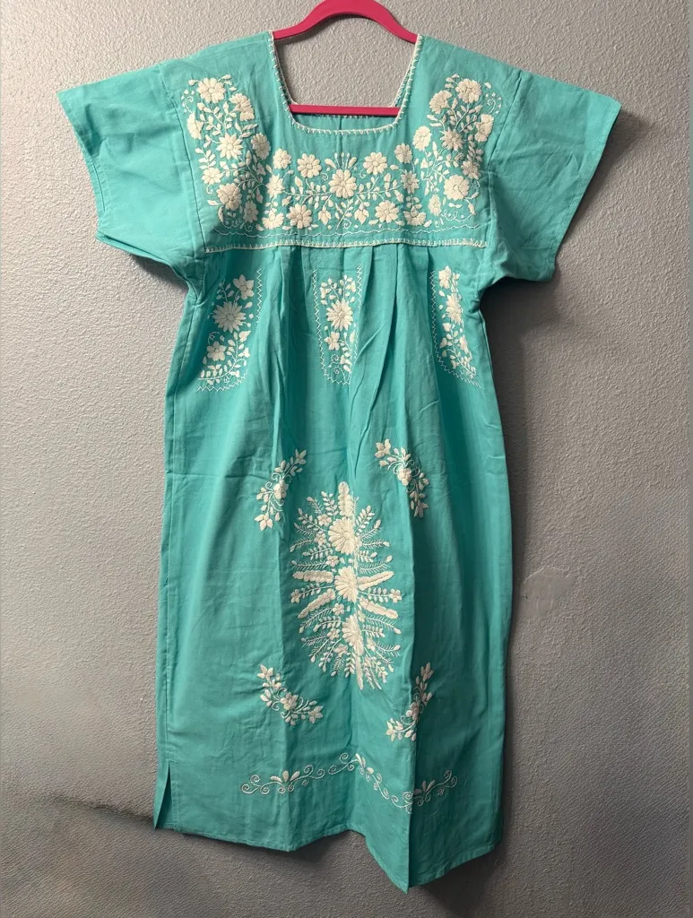 Aqua Mexican handmade Embroidered Dress sine M NWOT Blue Size M - $180 - From Mara