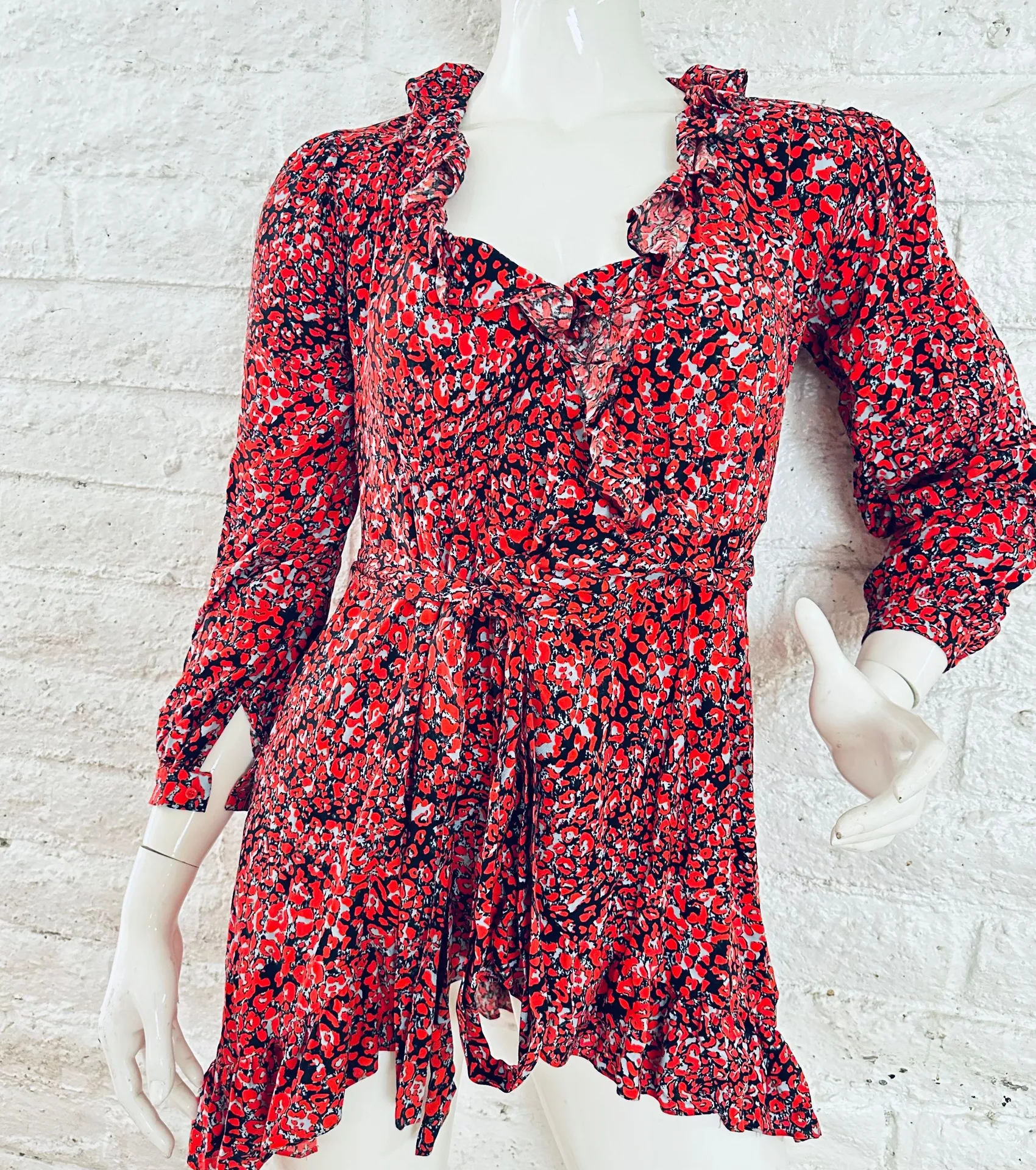 red animal print mini wrap dress women’Long sleeves size M Size M - $28 - From Ada