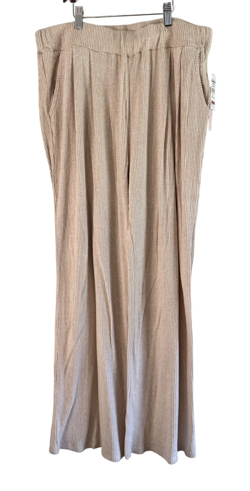 Keywords: AQUA, ribbed pants, wide leg pants, lounge pants, knit pants, casual pants, elastic waist, extra large, XL, beige pants, comfortable pants, womens pants, new with tags, NWT