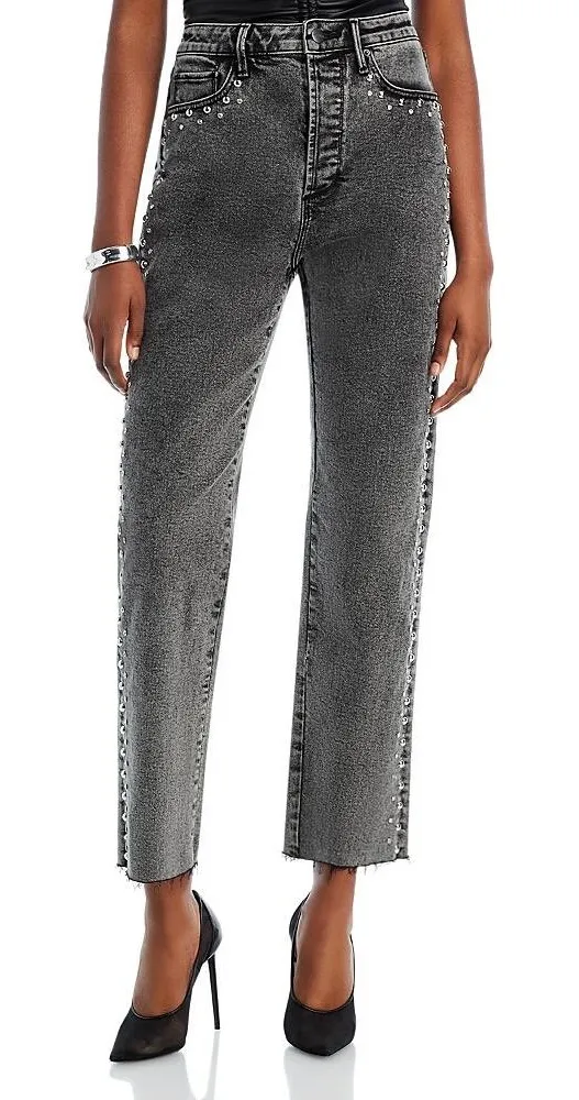 Keywords: AQUA jeans, studded jeans, gray wash jeans, high rise jeans, straight leg jeans, cropped jeans, raw hem jeans, designer jeans, women's jeans, size 28 jeans, denim, casual jeans, fashion jeans, studded denim