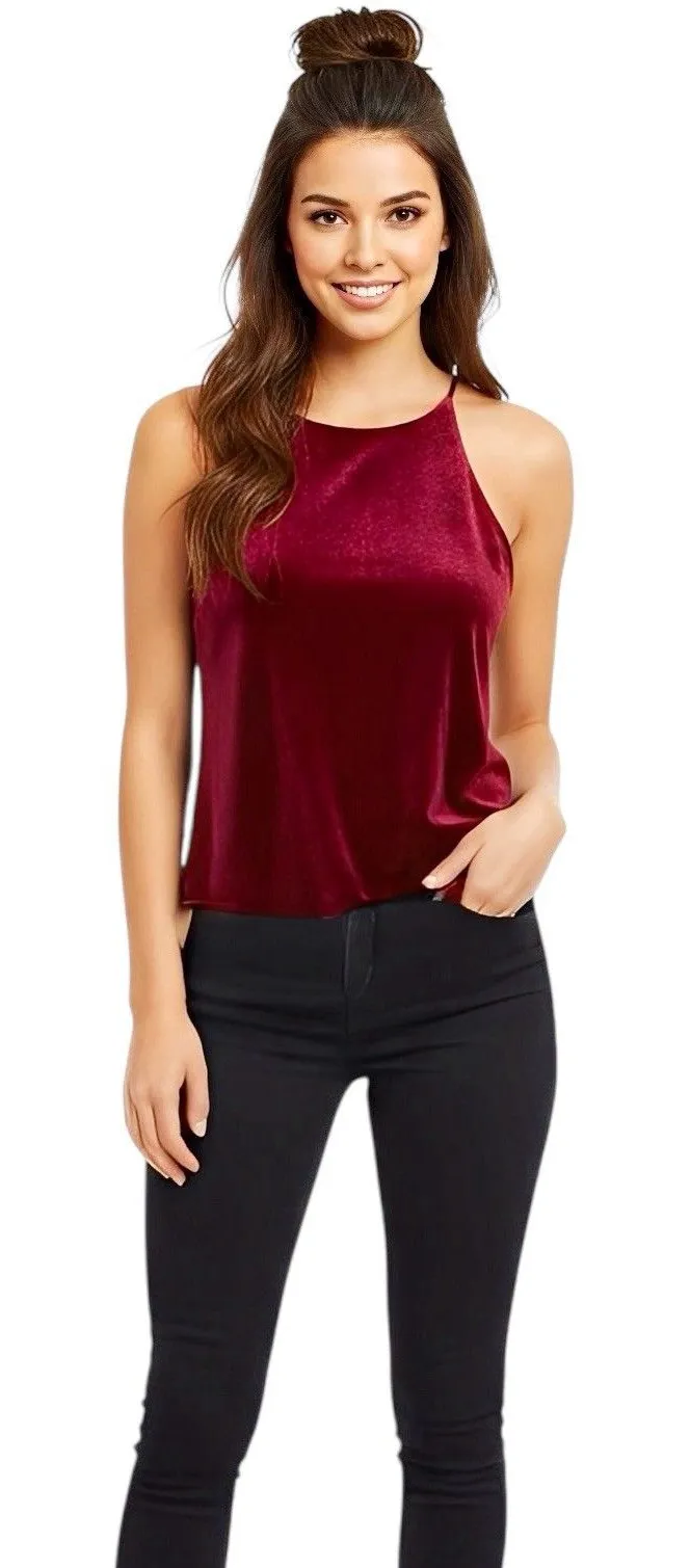 Aqua Womens Top Sz XS Velvet Crush Edgy Emo Punk Gothic Boho Y2k 90s Whimsigoth Halter Burgundy Glam... Show more