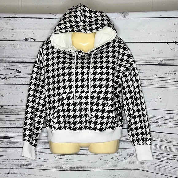 Aqua x Scout The City Size S Black & White Houndstooth Print Crop Hoodie. Hood with Drawstring Tie.... Show more