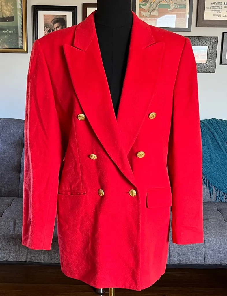 Elevate your style with this Vintage Aquascutum chic red double-breasted blazer. Super soft wool an... Show more