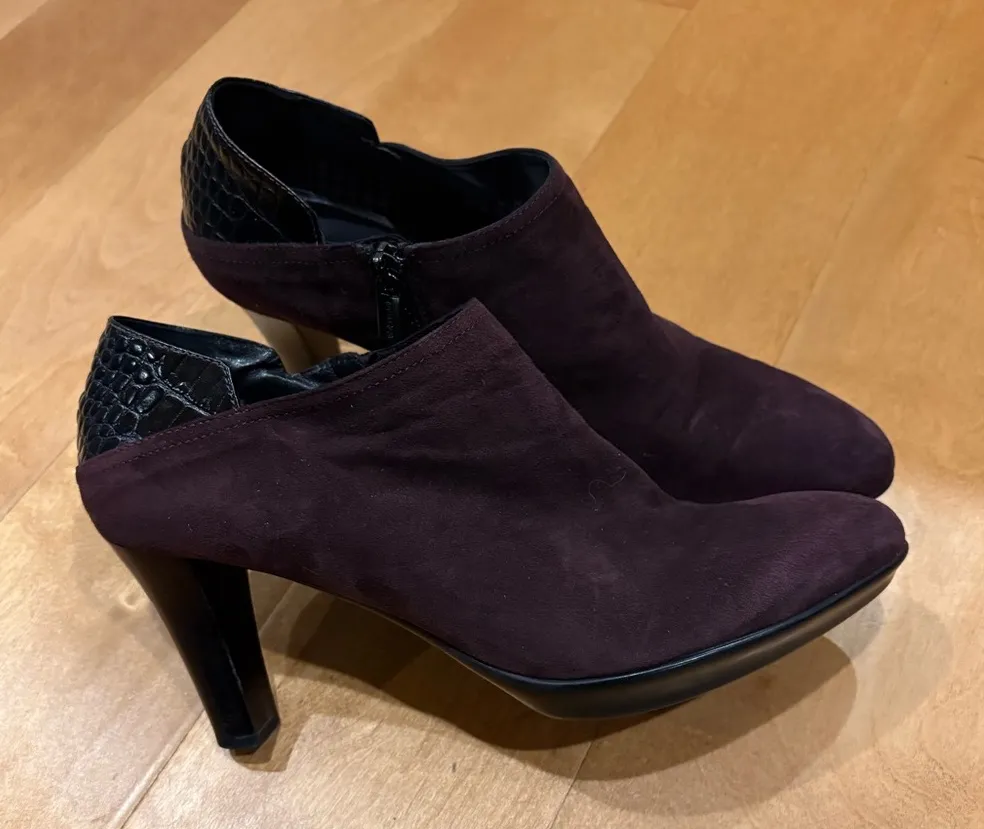 Aquatalia Italy heeled suede booties boots shoes croc embossed sz 9.5 burgundy Red - $50 - From Anna
