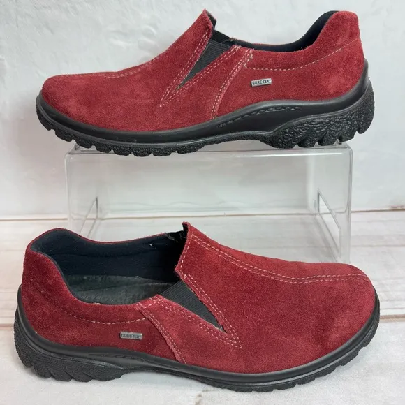 Using only the finest materials, each product is manufactured paying the utmost attention to detail and quality. Ara designs each shoe to cushion the foot's complex anatomical structure. Ara also offers patented Goretex® technology in selected styles for increased breathability in the summer or warmth and moisture-proofing in the winter. 1.25” At the heel, .5” at the front. Elastic inserts for ultimate comfort and easy slip on/off. Metal logo tags. Women’s size 8.5. Sizing on shoe is euro size 6-see chart pictured. Excellent, like new preowned condition. Clean, smoke free home and studio. Five star seller. Super fast shipping! SKU#S230 SB1