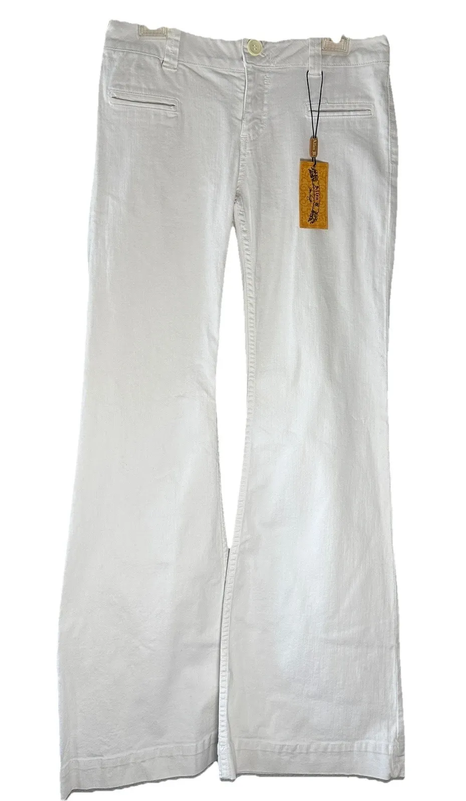 VTG Allen B Women's Sz 31 White Flare Pants Y2K Minimalist Resort Boho Chic. Measurements: 16" Waist 9.5" Rise 20 Hip 35" Inseam 13" Hem Elevate your wardrobe with these brand-new Denim Sport by Allen B. white flare pants. Crafted in the USA from a comfortable cotton-spandex blend, these pants feature a flattering mid-rise and slight flare leg. Perfect for summer outings, resort getaways, or embracing the Y2K aesthetic. Features: • Size: 31 • Color: White • Material: 98% Cotton, 2% Spandex • Made in: USA • Style: Mid-rise, Flare leg • Condition: New with Tags Style Aesthetic: Boho, Coastal, Minimalist, Y2K