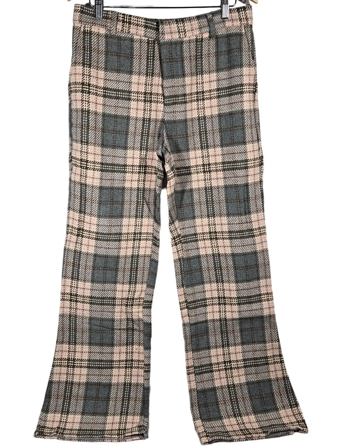 AREA STARS Plaid Wide Leg Pants Trousers Womens Large Pink Grey Flannel Blend New with tags Tagged... Show more