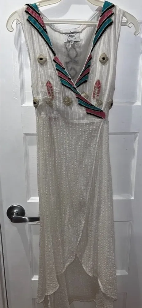 Size S Mayan Wrap Dress White Midi Embroidered with some beading in the back You can tie on the side... Show more