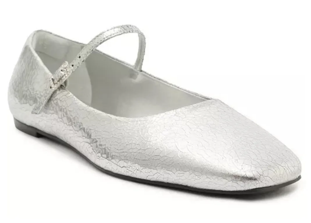 The Arezzo Eleanor Women's Ballet Flats in size 7.5 are a stylish and versatile choice for a variety of occasions. With a square toe shape and adjustable strap closure, these Mary Jane style flats offer a comfortable and custom fit. Made of high-quality leather and featuring a solid silver color, these designer shoes are perfect for travel, weddings, parties, or casual outings. The Arezzo brand and elegant design make these ballet flats a must-have addition to any woman's shoe collection. 22220. 102725