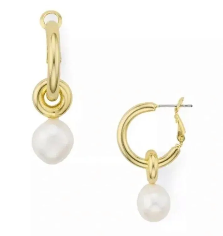 Argento Vivo Cultured Freshwater Pearl Hoop Drop Earrings brand new absolutely gorgeous super elegant and chic great addition to any outfit Argento Vivo Cultured Freshwater Pearl Hoop Drop Earrings in 18K Gold-Plated Sterling Silver. New. Have never been removed from display backing. 18K gold-plated sterling silver; cultured freshwater pearls 1.5"L. Hinge closure.
