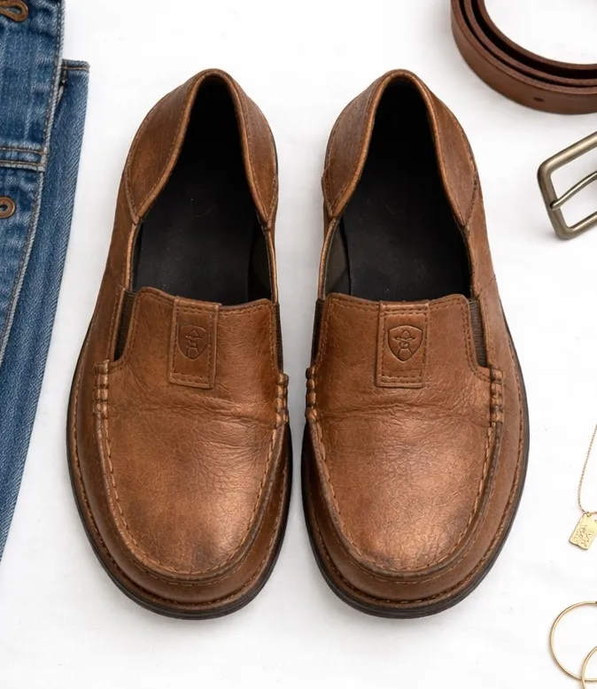 Ariat Cruiser slip-on loafers in bronze leather with western-inspired styling and relaxed everyday s... Show more