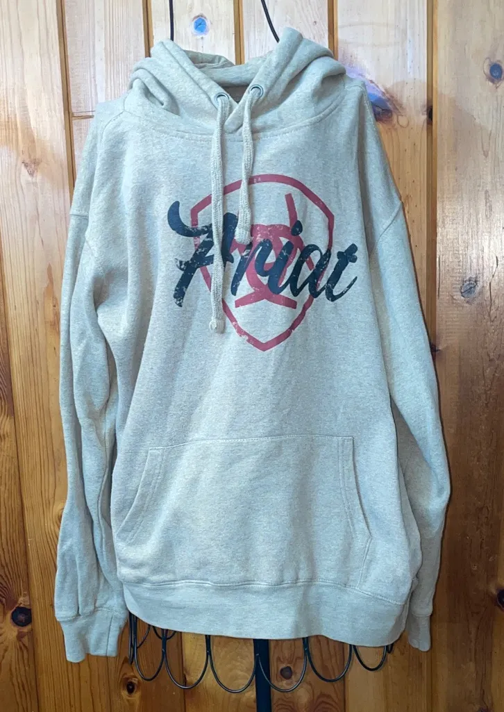Comfortable tan hoodie with striking red emblem. Ideal for everyday wear. Has been worn but still in... Show more