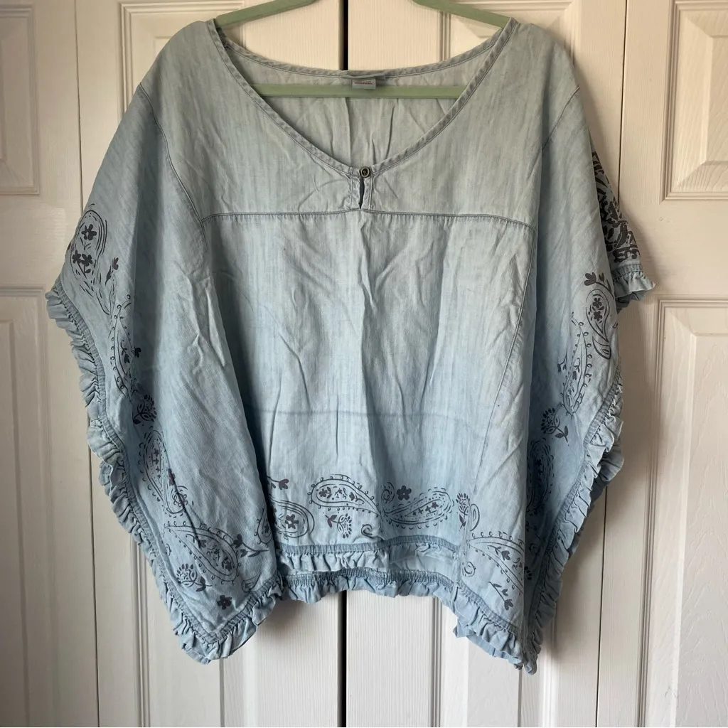 Ariat Women’s XXL Eden Poncho Top 100% Tencel Light Blue Blouse Floral Ruffle Western Features: U n... Show more