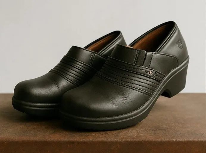 Ariat Womens Steel Toe Black Leather SlipOn Safety Mule Clog sz 8 Slip Resistant Great Preowned Con... Show more