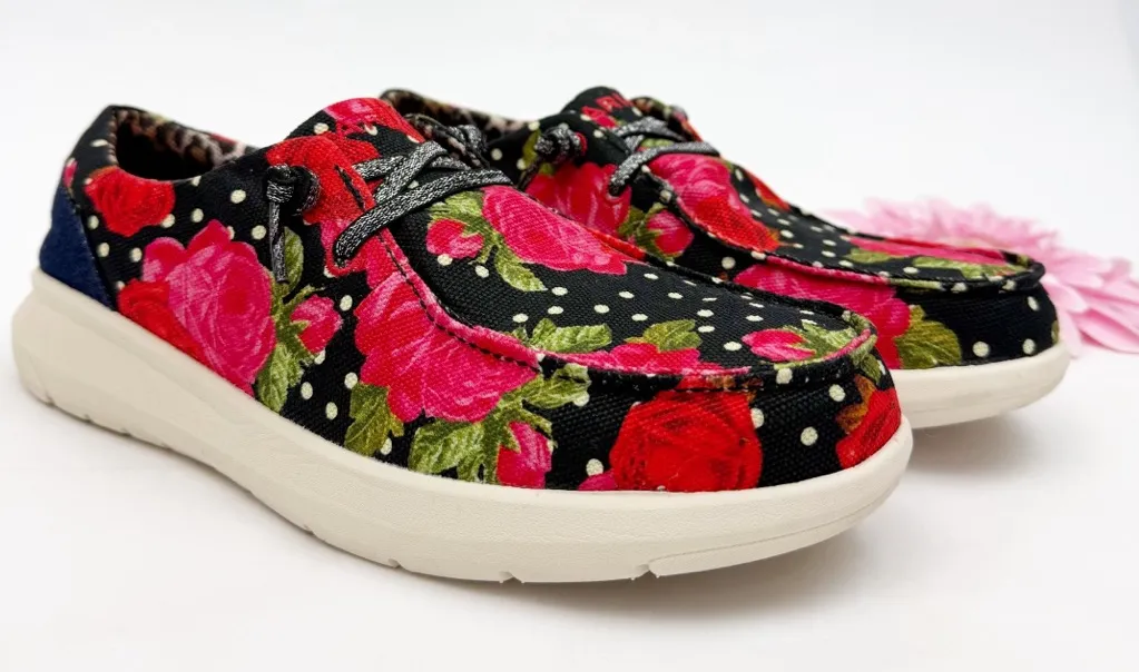 EUC Ariat X Rodeo Quincy Punchy Polka Dot Hilo Shoes Floral Rose Print Slip On. Size 8.5. Have some... Show more