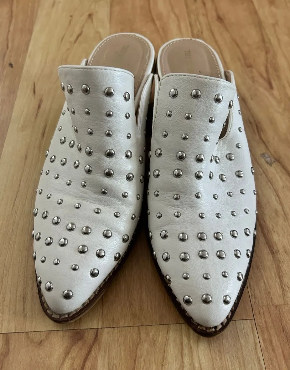 ARiderGirl Cara Studs Studded Stacked Heel Pointed Toe Slip On Mules Size 6.5 White - $35 - From Renata
