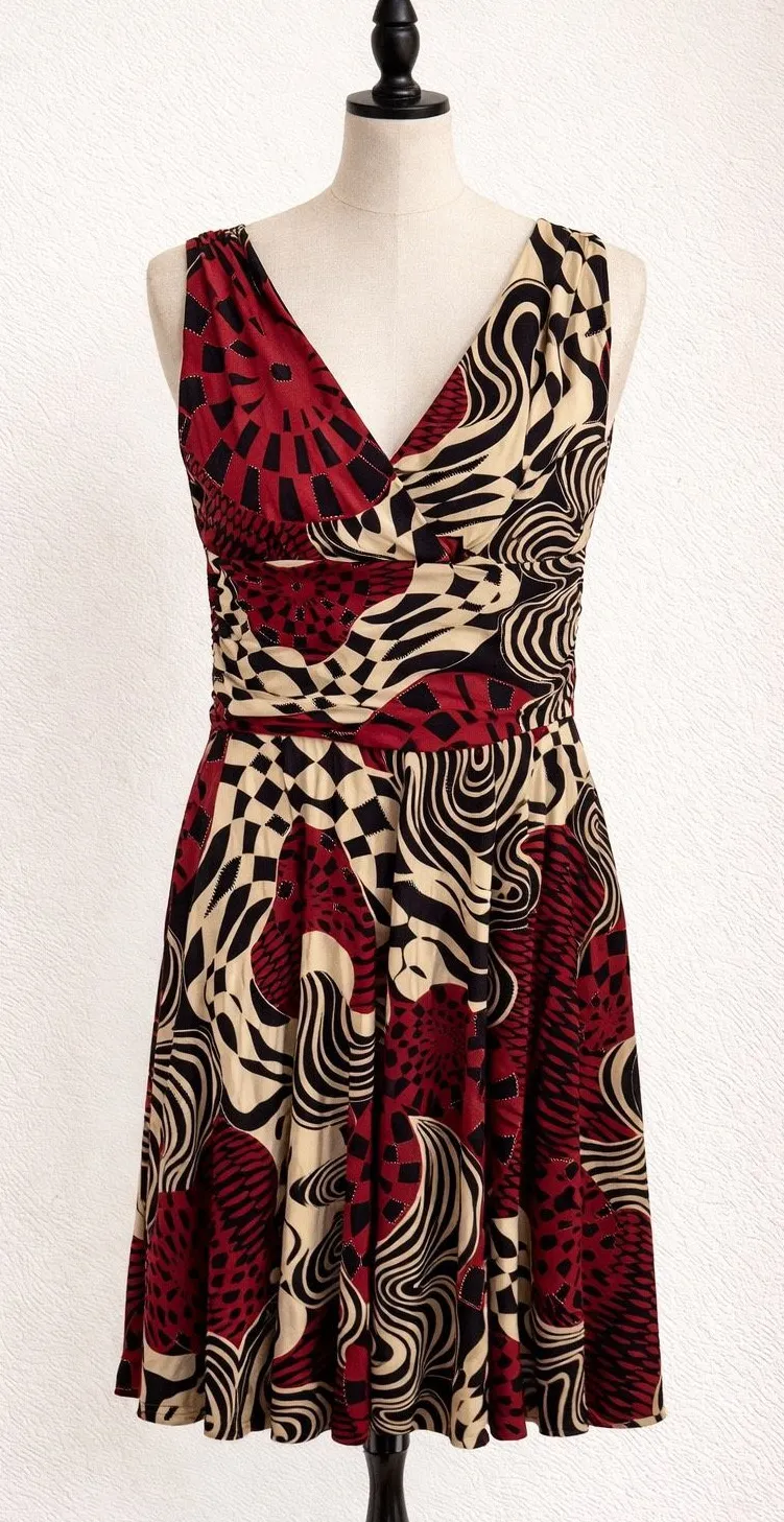 ⸻ Striking Ariella fit & flare dress featuring a bold abstract swirl and geometric print in red, black, and tan. Designed with a flattering V-neckline and flowy skirt—perfect for parties, date nights, or special occasions. • Brand: Ariella • Fit: Fits like a Medium • Color: Red, Black & Tan • Style: Fit & flare dress • Neckline: V-neck • Sleeves: Sleeveless • Pull-on style • Lightweight, stretchy fabric Fabric: • Likely polyester/spandex blend (tag not present) ⸻ ariella dress, abstract print dress, fit and flare dress, sleeveless dress, v neck dress, statement dress, red black dress, womens dress ⸻ #ariella #fitandflaredress #abstractprint #statementdress #womensfashion