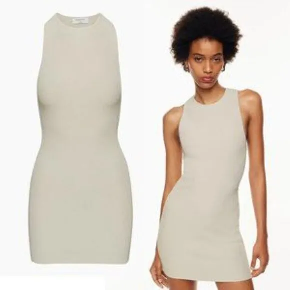 Aritiza Babaton Sculpt Knit Racer Mini Dress Matte Pearl Size M This is a racerback mini dress w... Show more