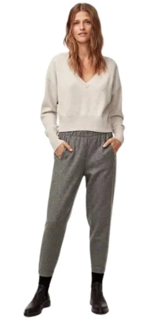 The Aritzia Babaton Dexter Wool Cropped Trouser Dress Pants in women's XS size are versatile pants suitable for various occasions such as travel, party, casual outings, and business meetings. These slim-fit pants feature a pull-on closure, mid-rise waist, and tapered leg style, making them a stylish and comfortable option for everyday wear. Made from a blend of polyester, silk, nylon, spandex, wool, and acrylic, these pants are lined, lightweight, breathable, and offer shaping and stretch for a flattering fit. With a solid gray color and minimalistic design, these pants are a chic addition to any wardrobe. Condition: BRAND NEW WITHOUT TAGS (never been worn)! Size: Extra Small, XS Material: Body 50% Wool 39% Polyester 4% Silk 4% Acrylic 2% Nylon 1% Spandex, Body Lining 89% Polyester 11% Spandex, Pocket Lining 100% Cupro Style #: WBS1-6441-38 Original Price: $148 Measurements (taken while garment is laying flat): Waistline: 13" Rise: 9.5" Inseam: 23" Leg Opening: 5" Ships FAST, within 24 hours of order placement! Tweed Jogger Joggers Tapered Business Casual Corporate Office Work Career Interview Dressy Stretch Comfortable Minimalist Neutral Preppy Classic Sporty Timeless Chic Stylish Trendy Trending Travel Trip Vacation Elevated Basic Quiet Luxury Formal Cocktail Party Event Glam Sporty Old Money Cool Girl Flattering