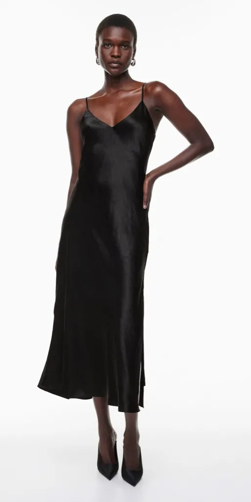 Aritzia Babaton Happenstance Satin Midi Dress Black size Small Petite. This is a V-neck maxi slip... Show more