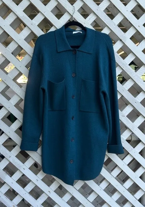 This is a fully fashioned button-up sweater with chest patch pockets. It’s knit with Wonder Yarn — t... Show more