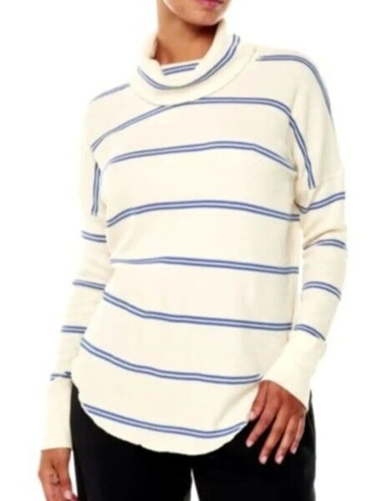 Aritzia Babaton Thermal Sweater Womens Size S Cream Blue Stripe Waffle Knit Cowl Neck Excellent pre... Show more