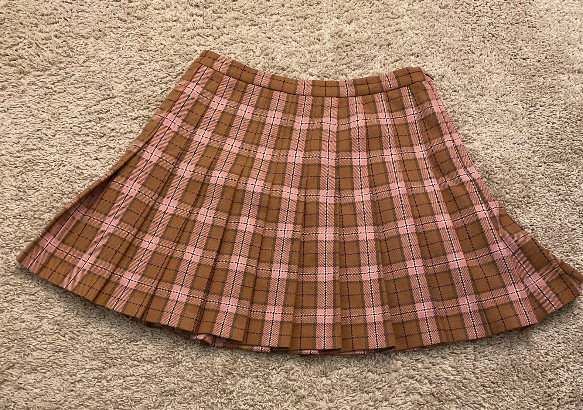 Introducing this stunning brown and pink plaid pleated skirt from Aritzia! This gently used skirt is... Show more
