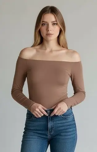 Sculpt your silhouette with this Aritzia Contour bodysuit. The flattering off-the-shoulder neckline... Show more