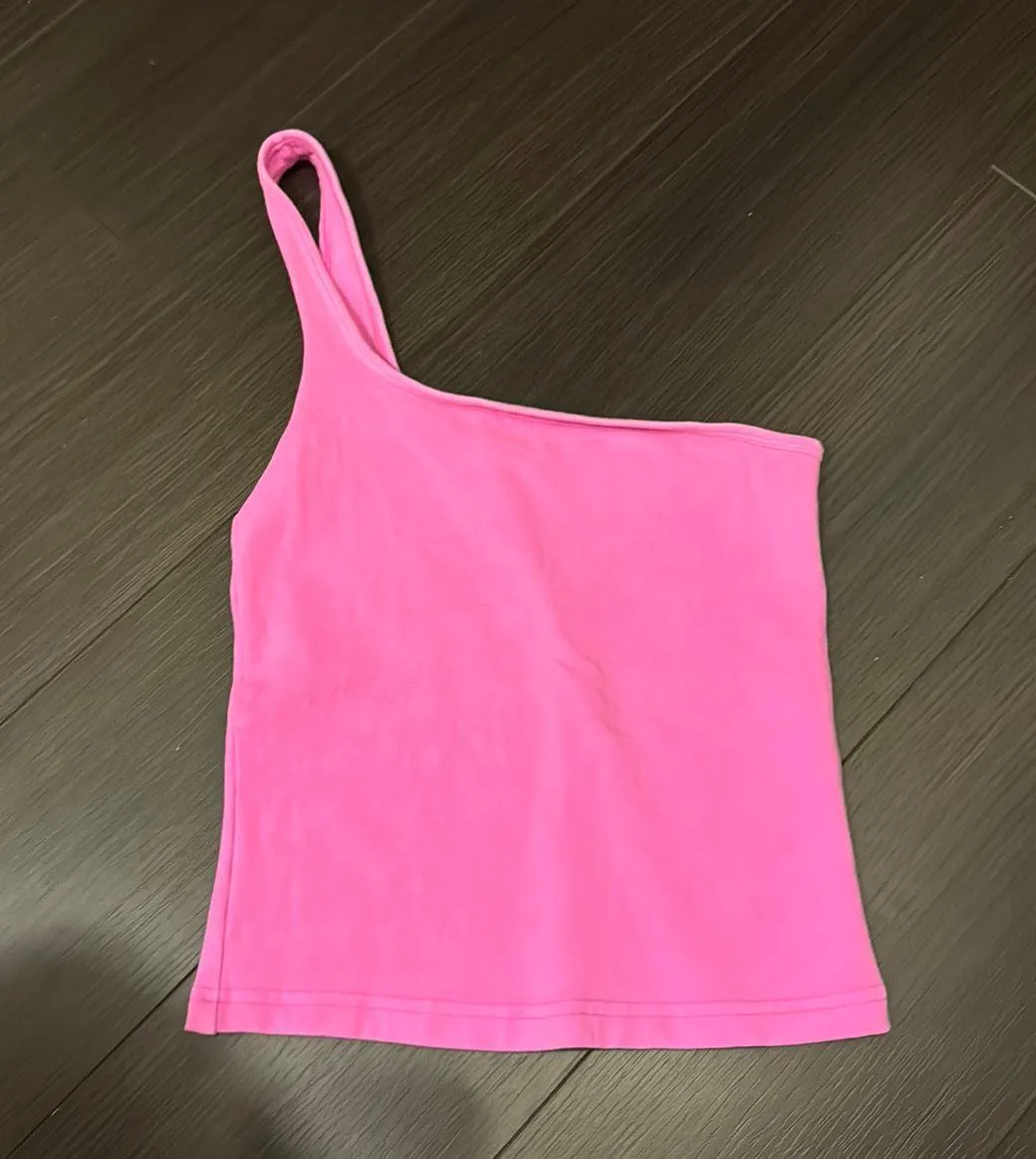 Bubblegum pink one shoulder crop top