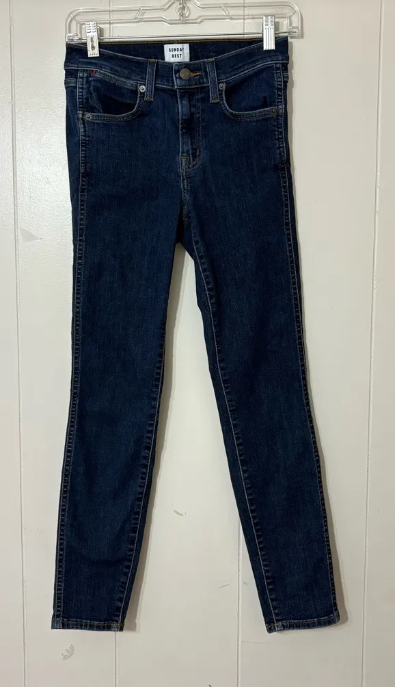 Upgrade your denim collection with these Aritzia Sunday Best Skinny Jeans in a flattering dark wash. Designed with a sleek, curve-hugging silhouette and comfortable stretch, these jeans are perfect for everyday wear. Easy to style with tees, sweaters, blouses, or boots — a timeless wardrobe staple from Aritzia. Style# Oss2-6000k-11 Article 82523 W:13” R:9” I:26” Lo:5” 87% Cotton 11% Polyester 2% Elastane ✨ Details • Brand: Aritzia Sunday Best • Style: Skinny jeans • Size: 25 • Color: Dark wash denim • Fit: Slim/skinny, mid-to-high rise Aritzia jeans, Sunday Best jeans, skinny denim, dark wash jeans, size 25 jeans, women’s denim, classic skinny jeans, stretch jeans, everyday denim, Aritzia pants, wardrobe staple jeans, Sunday Best denim