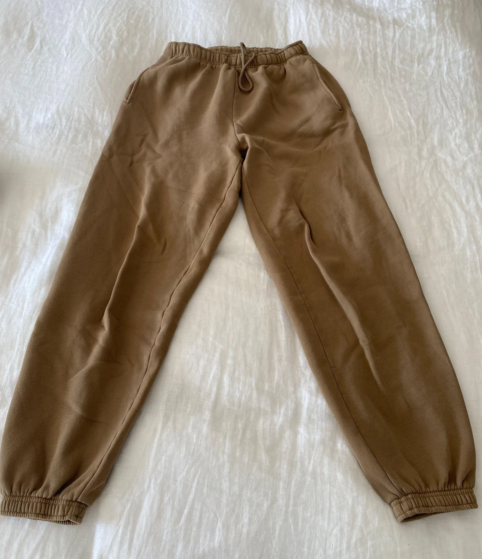 Tan TNA sweatpants from Aritzia, very loose fit in size M