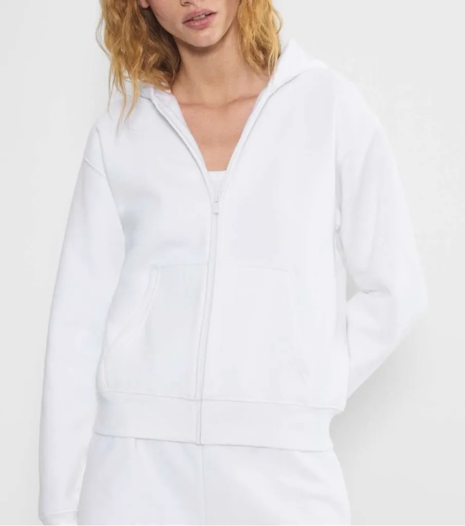 Aritzia TNA Sweatfleece Cozy Fleece Boyfriend Fit Zip Up Hoodie White XS - $40 - From Melissa