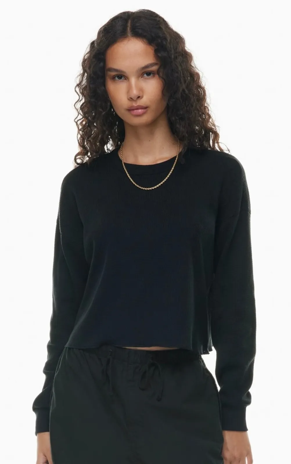 GOod pre owned condition no rips or stains. lightweight long sleeve crew neck tee shirt waffle textured fabric slightly cropped in length and boxy oversized fit. ➰refer to pictures for condition ➰bundle & save ➰colors may vary due to screen variations ➰smoke free home approximate measurments: across the back: 19" length: 17" M1U/14A