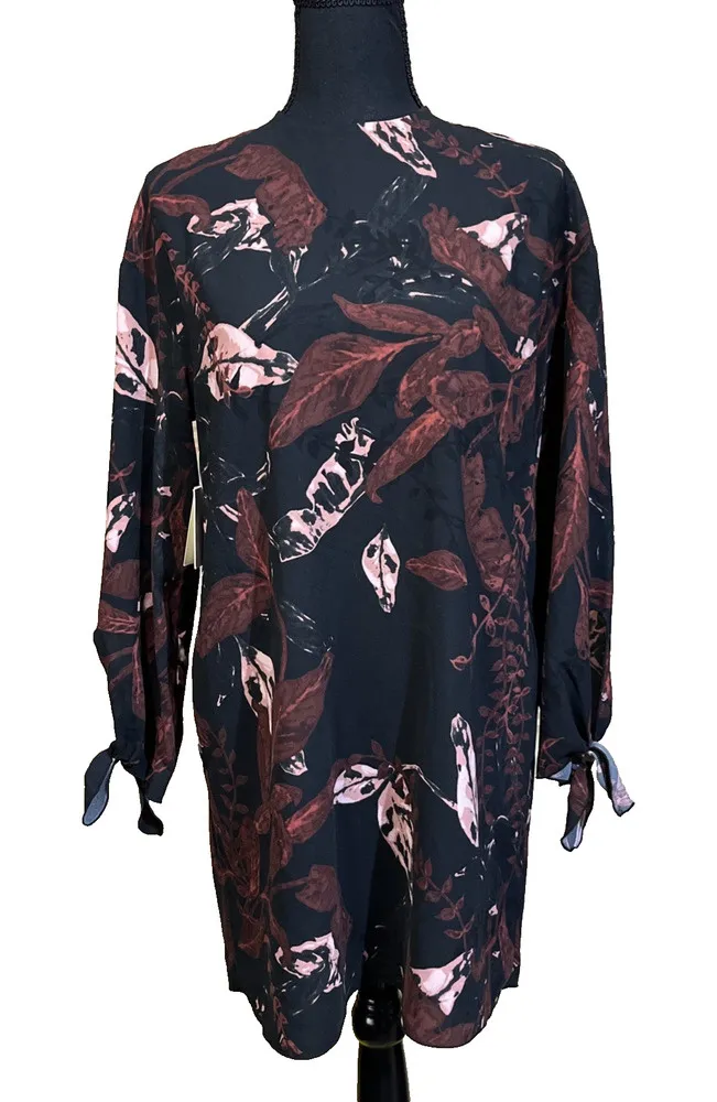 Ties at the neck and sleeves. Fully lined. 100% polyester. Dry clean only. Mesurements are approximate Chest 19 inches across Waist 38 inches Hips 40 inches Length 33 inches Sleeves 18 inches