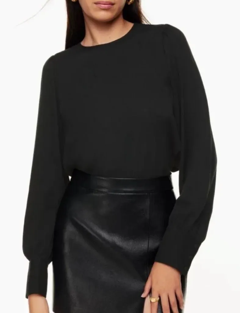 Originally $98 Great pre owned condition Approximate measurements Bust across 18” Length 23” Puff piece This is a crew-neck puff-sleeve blouse with a keyhole cutout at the back. It's cut from ReCrepe™, a lightweight, drapey crepe fabric made with LENZING™ ECOVERO™ Viscose — responsibly sourced wood-based fibres produced through a process that reduces impact on forests, biodiversity and water supply. Responsible Forestry Features Button closure at back keyhole Button-closure cuffs Materials & Care Content: 52% viscose, 48% LENZING™ ECOVERO™ viscose Care: Hand wash Imported Fit: Relaxed — An easy shape that's just shy of loose Length: Hip — Intended to hit at or below the hip Model is 5'10"/178cm wearing a size S On average, customers say it fits true to size