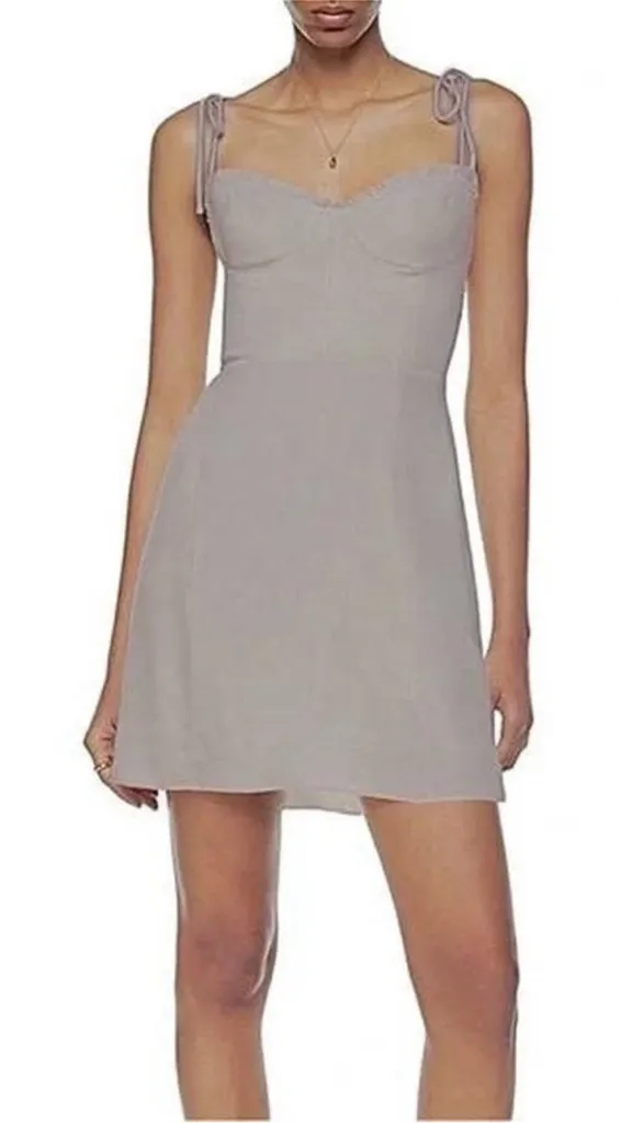 Invisible side zip Ruffled neckline Bodice seaming details Content: 53% viscose, 47% rayon; Lower lining: 100% polyester Care: Hand wash Fit: Slim — Streamlined to fit close to the body Length: Mini — Intended to hit between mid thigh and low thigh On average, customers say it fits true to size Excellent preloved condition. BIN400