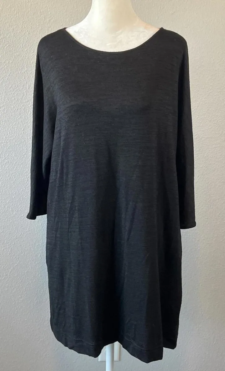 Size XXS Rayon/polyester/spandex pockets wide neck elbow sleeves swing dress lightweight oversized body fit brown black melange Good used condition - a little pilling from wear Approx measurements lying flat: 19.5" pit to pit 31" length 9.5" sleeve from armpit 1921