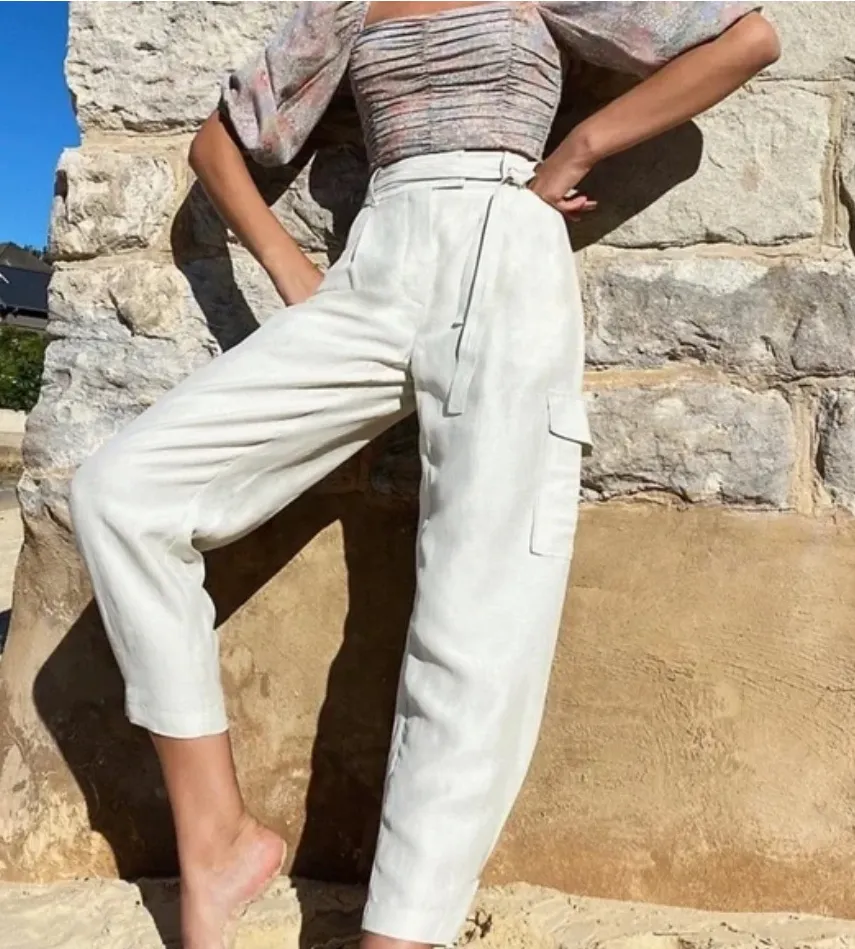 Beautiful Wilfred by Aritzia Kafka linen cargo pants in a soft coastal beige tone. Lightweight and b... Show more