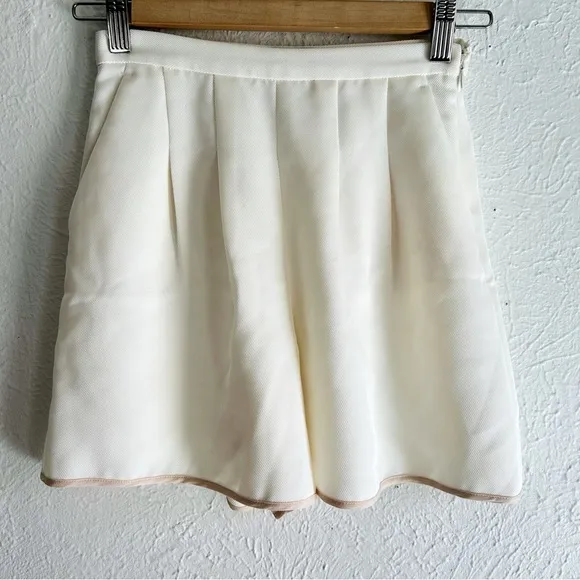 High waisted Pleated Side zipper Contrast tan trim Excellent preowned condition ▫️Waist-11.5”... Show more