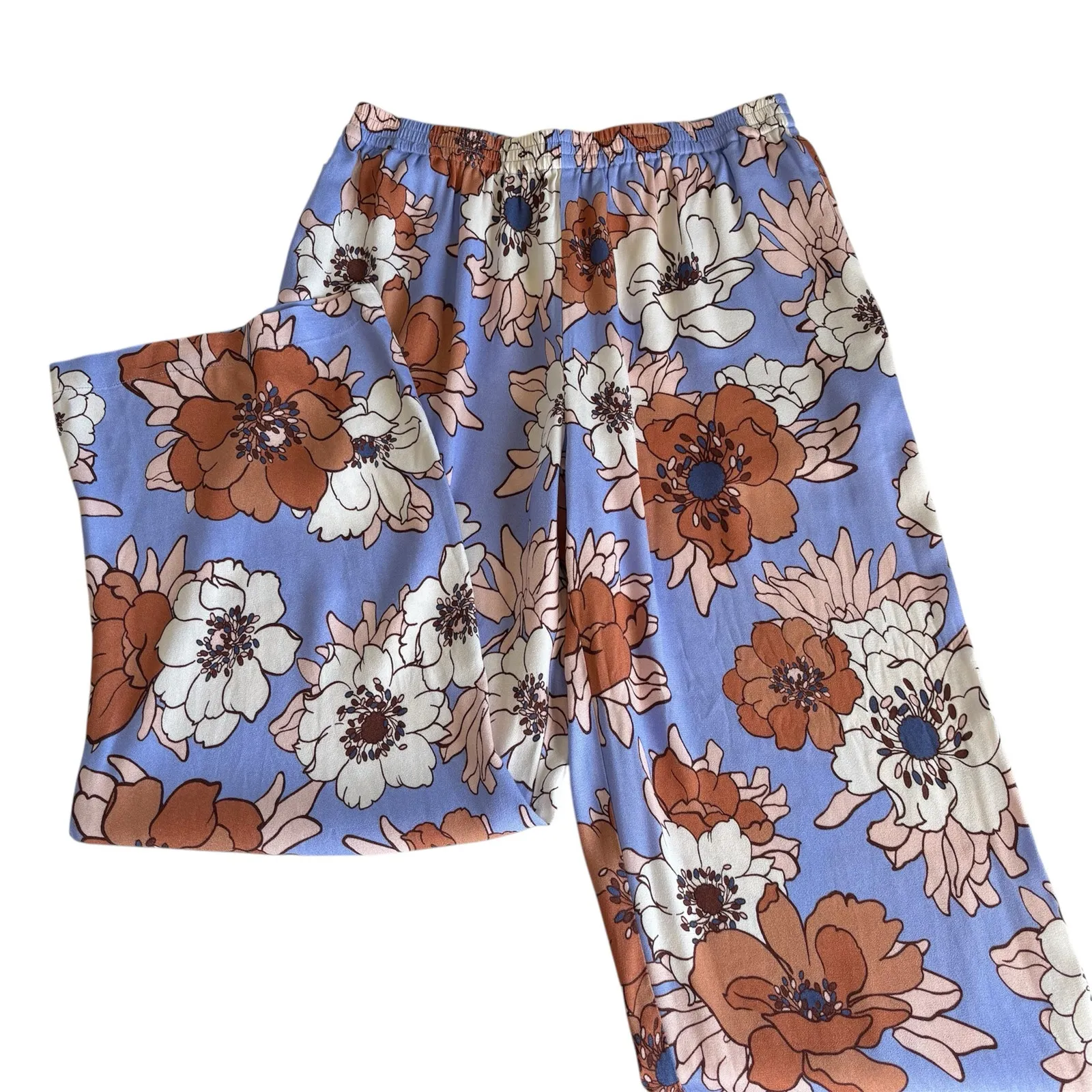 Features: Aritzia Wilfred Overture Pants Purple Floral Print Pull On Stretch Waist Trouser in Iris... Show more