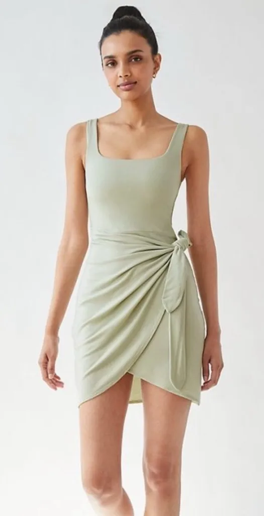 Brand new with tags Wilfred Saturn Mini Dress in the dreamy pastel sage green shade. This flattering mini dress features a square neckline, tank-style straps, body-skimming fit, and an adjustable wrap tie detail at the waist for a chic, draped effect. Made from a soft, stretchy fabric that hugs in all the right places while staying comfortable. • Brand: Wilfred (Aritzia) • Style: Saturn Mini • Color: Pastel Sage Green • Size: XL • Fabric: [likely modal / elastane blend — soft and stretchy] • Care: Machine wash cold, gentle cycle (per Wilfred care) • Retail: $68 (tag still attached) Flirty and versatile — perfect for brunch, date night, vacation, or as a stylish summer/fall layering piece under jackets or cardigans. Wilfred Saturn mini dress, Aritzia wrap tie mini, pastel sage green bodycon dress, tank top mini dress, summer party outfit, wedding guest casual dress, brunch outfit, date night dress, minimalist chic mini, new with tags Aritzia dress XL