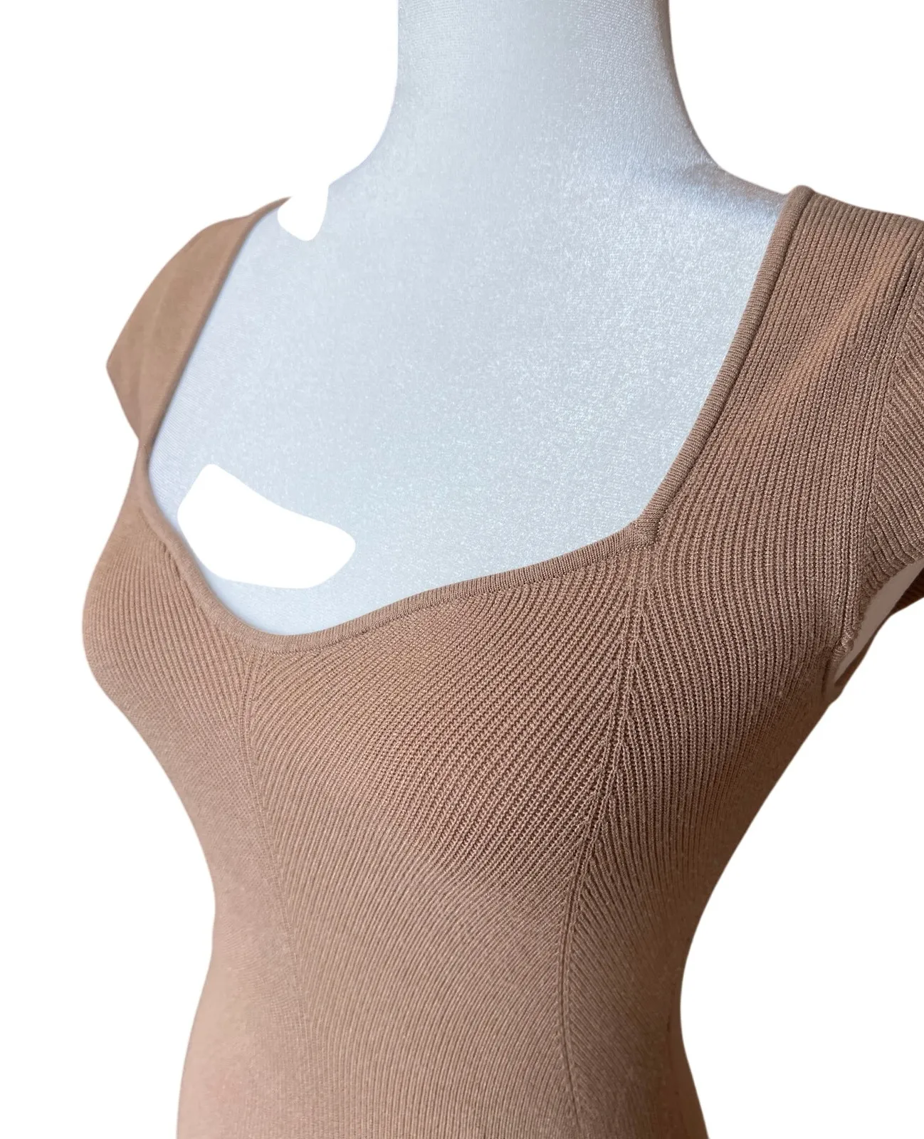 Wilfred Tan Ribbed Knit Short Sleeve Sweetheart Neckline Marked as a Women's Size M - Wilfred runs small. Fits more like an XS/S. See unstretched Measurements for best fit. Normcore Excellent pre-owned condition - no stains, rips, holes etc. Please look at pictures of the item and feel free to ask questions before purchase. Orders are packed with care and ship the next business day! See my other items for sale! I'm happy to combine orders for savings on shipping. Thanks for shopping!