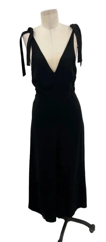 Aritzia Wilfred Tie Shoulder Sleeve Black Midi Dress Features slip silhouette, tie detail at should... Show more