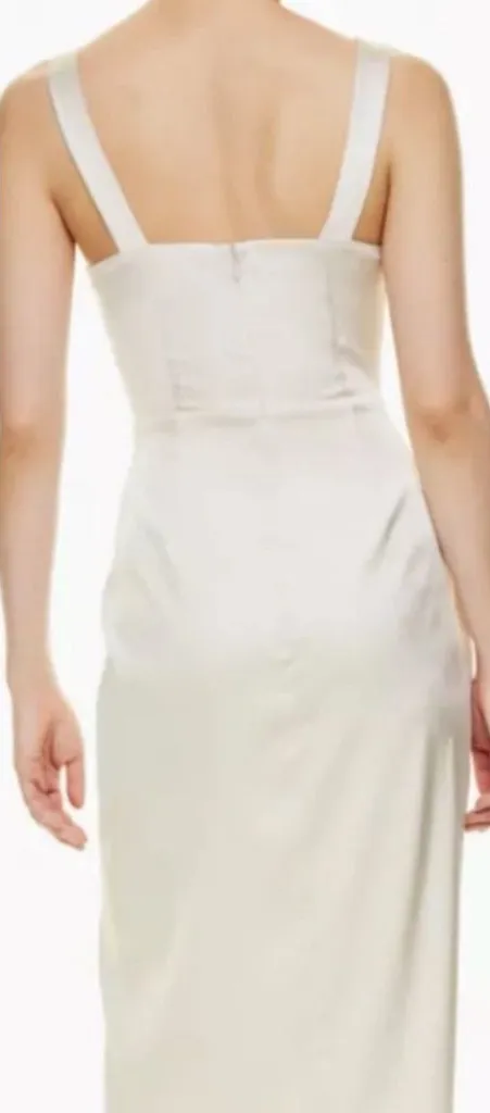 EUC Aritzia x Babaton 90’s Satin Square Neck Slit Midi Dress Pearl. Size 8. Features • Line... Show more