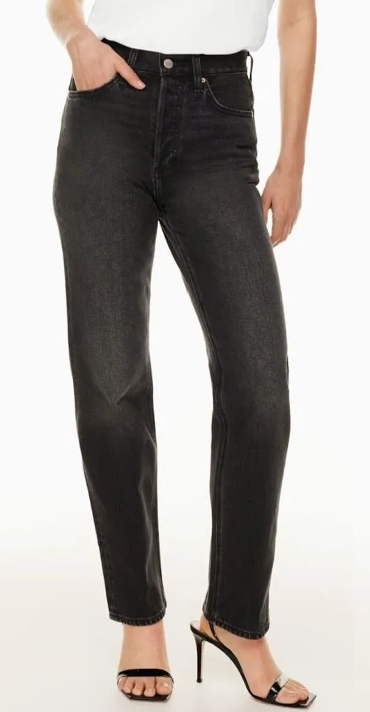 EUC Aritzia X Denim Forum The '90s Joni Hi-rise Loose Jean Washed Black Straight Leg. Size 25 x 29... Show more