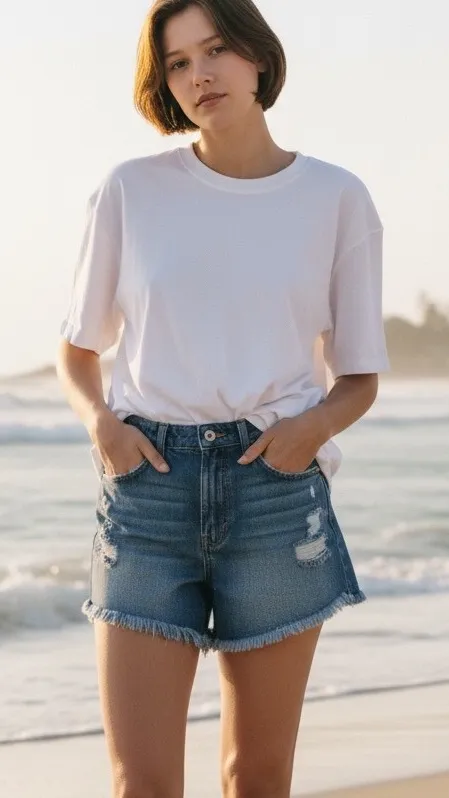 Upgrade your summer wardrobe with these stylish Ariya women's and juniors' medium wash distressed jean shorts. Perfect for a day out in the sun, these hot pants are made from high-quality fabric that will last you for seasons to come. The shorts come in a beautiful blue color that will match any top you choose to wear. The brand Ariya is known for its quality products, and these shorts are no exception. They are designed for women and juniors, with a size 7/28" waist that will fit most people comfortably. Whether you're going to a concert or just taking a walk in the park, these shorts are the perfect addition to your outfit. Summer