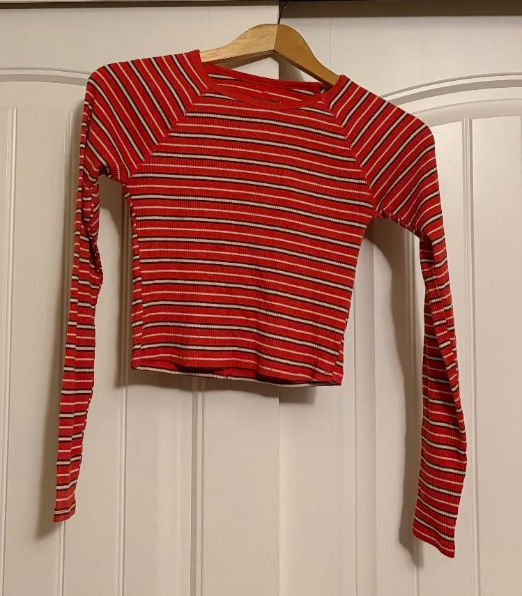 Arizona Jean Co Crop Top Small Long Sleeve Striped Red Ribbed Cotton Blend Y2K - $13 - From Mary
